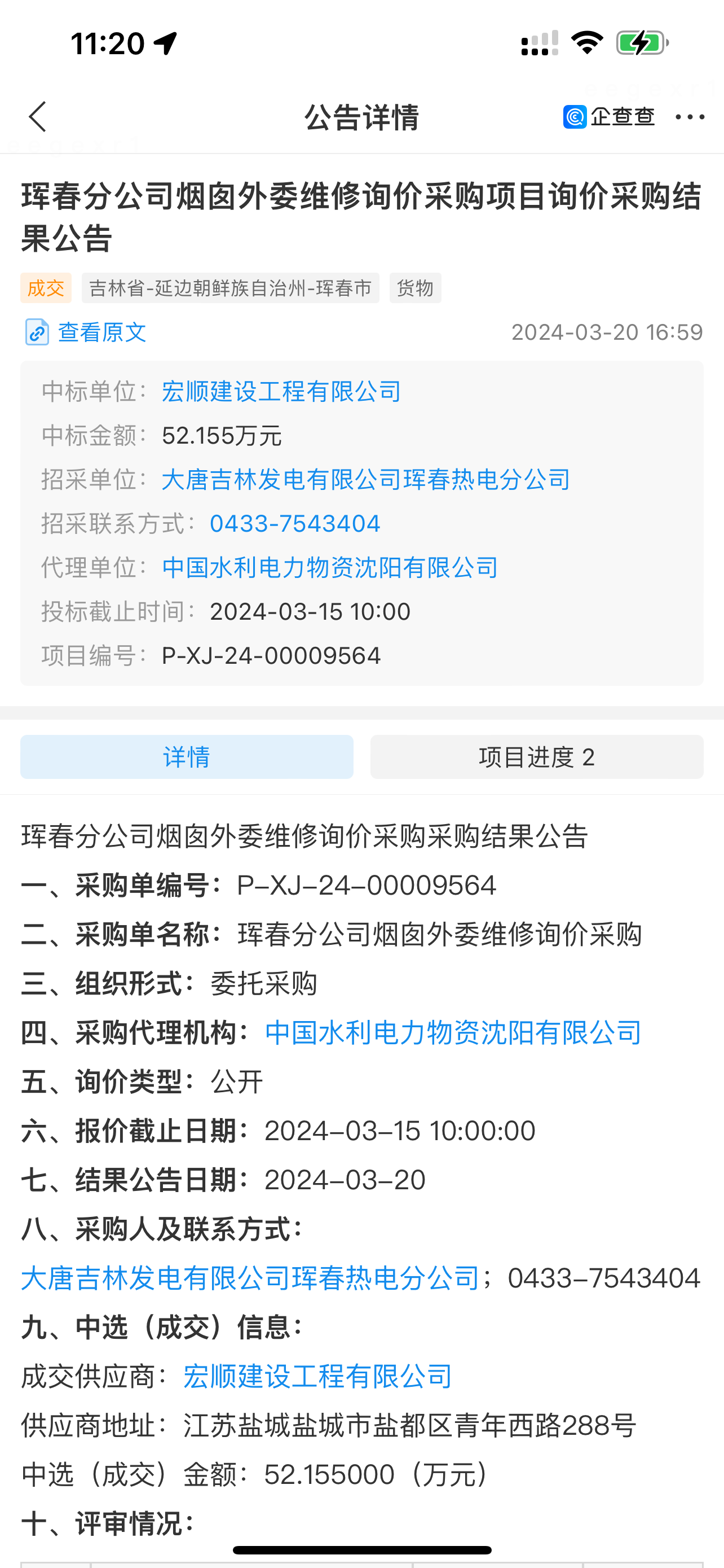 熱烈祝賀我公司中標大唐吉林發(fā)電琿春熱電的煙囪外委維修工程